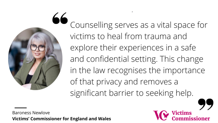 Statement – Baroness Newlove welcomes moves to better protect victims’ counselling records