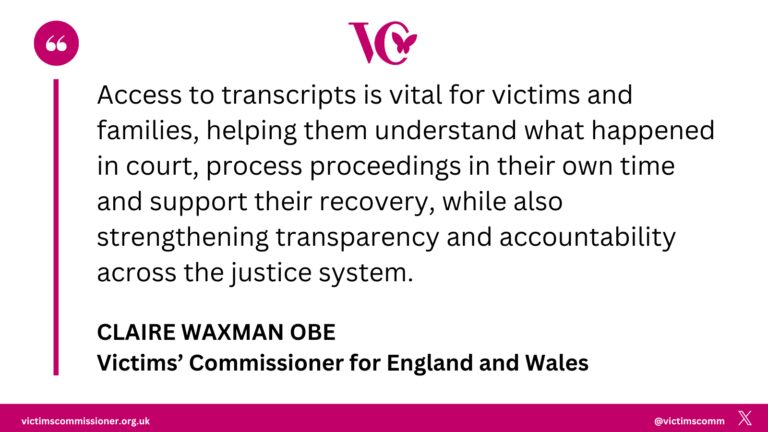The Government also announced that from Spring 2027, victims whose cases are going through the Crown Court will have access to free transcripts of